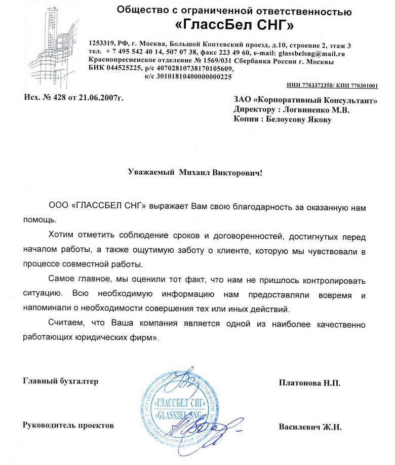 Hereby GlassBel CIS Ltd. expresses its gratitude for your assistance.